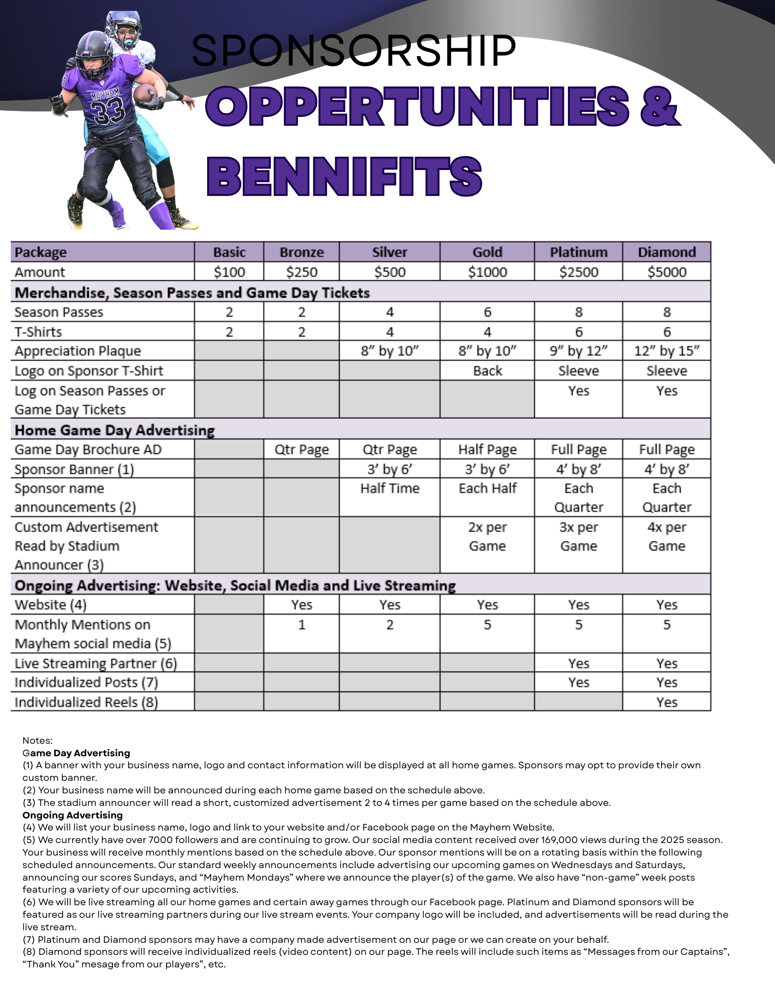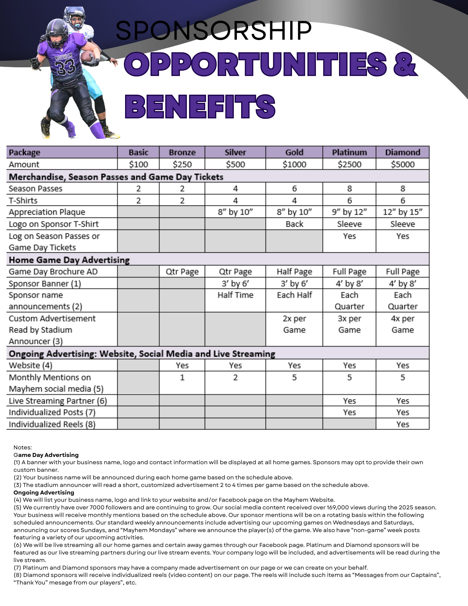 2026 Mayhem Sponsorship Levels